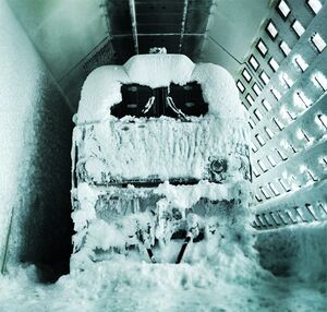 Vereiste Lok im Klima-Wind-Kanal - Baurful commons.wikimedia.org, CC BY-SA 3.0