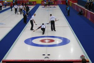 Curling wird auf besonders vorbereiteten Eisbahnen gespielt. Die Eisbahn ist ca. 44,5 Meter lang und maximal 5 Meter breit.