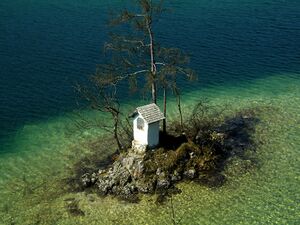 Das Hochzeitskreuz auf einer kleinen Insel im Wolfgangsee - Igby www.flickr.com, CC BY-NC-ND 2.0