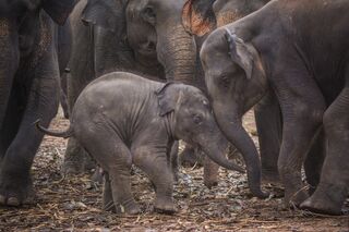 | Beschreibung | Asiatisches Elefantenkalb umgeben von erwachsenen Elefanten |