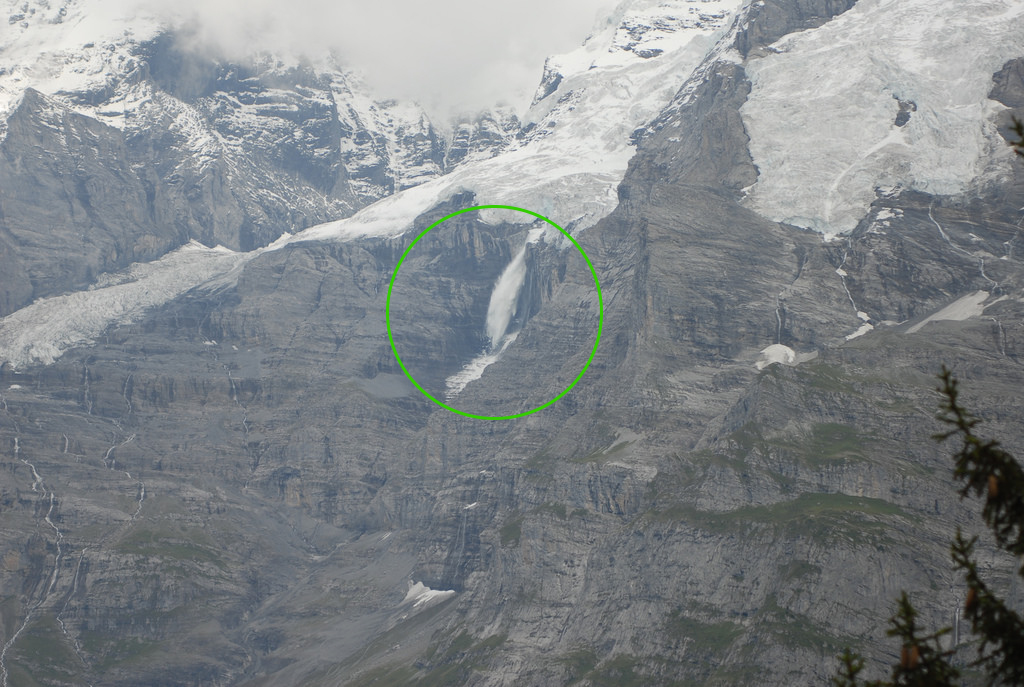 Beschreibung Abgang einer Lawine aus Eis von einem Berg