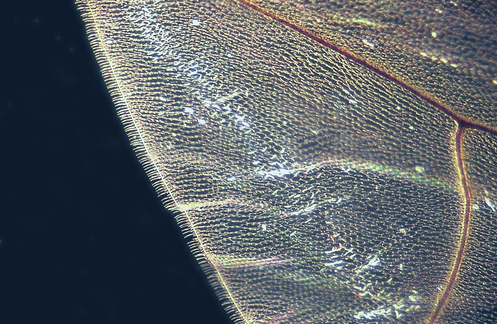 | Originaltitel | Rand eines Fliegenflügels bei ca. 200 fach im Dunkelfeld. Ausschnitt ca: 800µm x 500µm