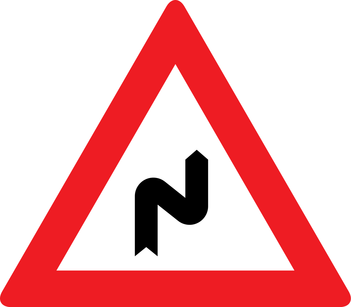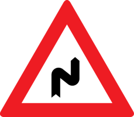 Beschreibung Dieses Verkehrszeichen ist ein Gefahrenzeichen und kündigt gefährliche Kurven links beginnend an.