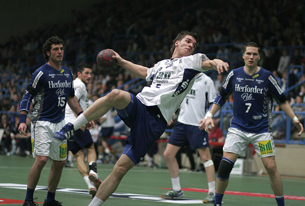 Originaltitel Hannes Volk, Spieler des TV Großwallstadt, am 24. März 2007 im Spiel gegen den TBV Lemgo in der Aschaffenburger Unterfrankenhalle