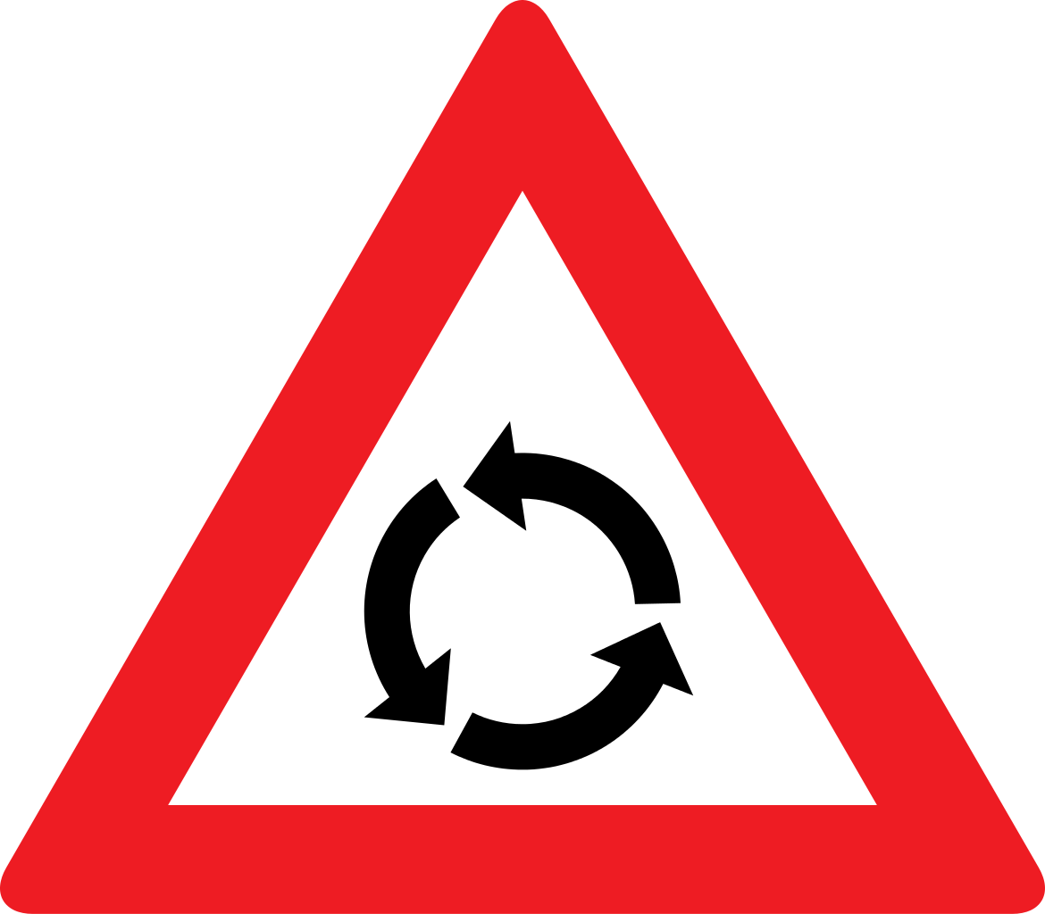 Beschreibung Dieses Verkehrszeichen ist ein Gefahrenzeichen und kündigt einen Kreuzung mit einem Kreisverkehr an.
