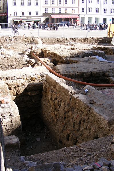 Beschreibung Ausgrabung römischer Mauerreste unter dem Residenzplatz in Salzburg