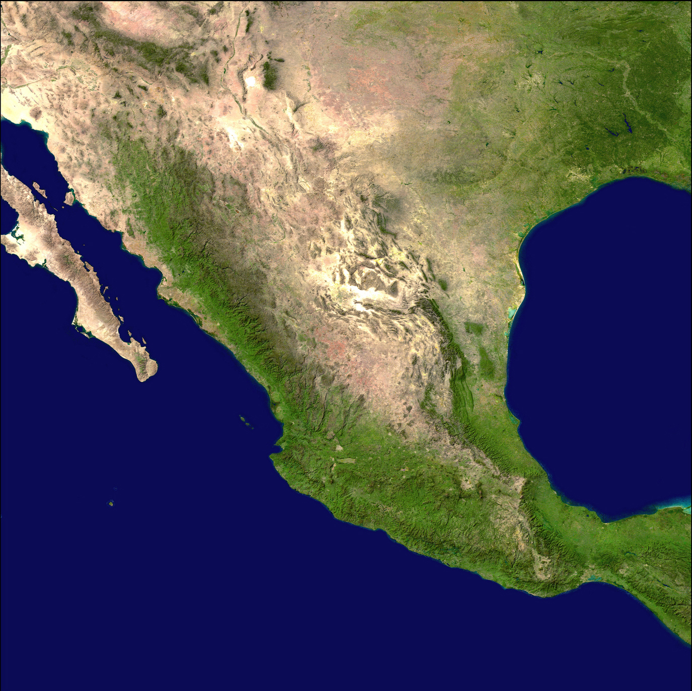 | Beschreibung | Norden: Wüste, Osten: Regenwälder, (Mexiko aus dem Weltall) |