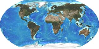 Originaltitel GEBCO_08 with Shaded Blue Marble Landmass