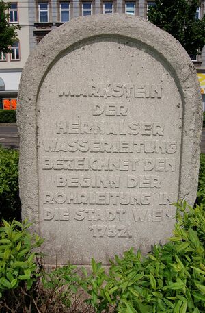 Vor etwa 500 Jahren speiste das Wasser der Als die erste Wasserleitung Wiens. Ein Markstein ist zum Gedenken daran aufgestellt.