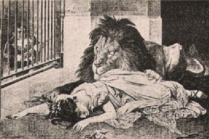 Am Tag der Hochzeit ging Berta in ihrem Brautkleid noch einmal in den Käfig, um sich von ihrem Löwen zu verabschieden. Doch er war diesmal nicht so glücklich wie sonst über ihren Besuch. Als sie den Käfig verlassen wollte, stellte sich der Löwe ihr in den Weg und brüllte laut. Als der Bräutigam vor dem Zwinger erschien, schlug der Löwe seine Beschützerin mit seiner Pranke zu Boden und tötete sie.