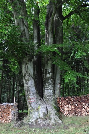 Auf dem Getreideacker wuchsen später vier kleine Buchen, die im Laufe der Jahre zu einem großen Baum zusammenwuchsen.