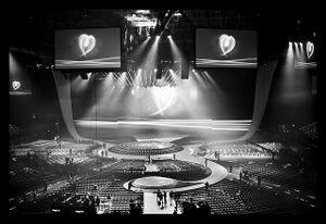 Der Songcontest findet übrigens immer in dem Land statt, das im Jahr davor gewonnen hat. 2015 war das Austragungsland Österreich. Anlässlich des ESC wurde die Stadthalle innen feierlich ausgestattet. Auch äußerlich war sie im ESC-Design.
