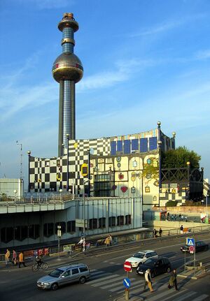 - 1983 begann nach jahrelanger Planung und Vorbereitung der Bau eines Hauses Ecke Löwelgasse-Kegelgasse, das heute als Hundertwasserhaus (Architekt: Josef Krawina) weltbekannt ist. Es folgten weitere Bau-Projekte in Wien, Niederösterreich, Steiermark, Deutschland, Neuseeland, Japan und den USA.