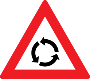 Dieses Verkehrszeichen zeigt eine Kreuzung mit Kreisverkehr an.