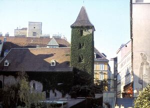 Sie wurde im 14. Jahrhundert erbaut. Während der 2. Türkenbelagerung wurde die Turmspitze zerstört und nicht mehr nachgebaut.