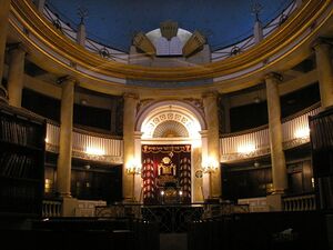 Der Stadttempel wurde 1825 bis 1826 errichtet. Damals durfte es nicht direkt an der Straße stehen. So wurde es hinter einem hohen Mietshaus verborgen.
