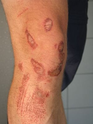 Schürfwunden sind vielfach flächenhafte offene Wunden und meist die Folge von Stürzen zB beim Radfahren oder Inlineskaten.