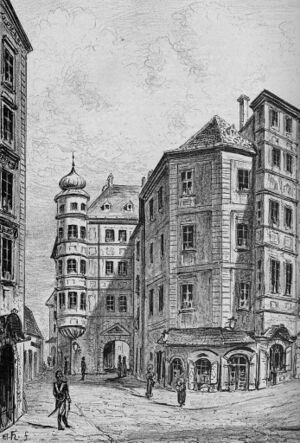 In der Nähe des Rotenturmtores in der Adlergasse stand vor ungefähr 400 Jahren der Gasthof „Zum roten Adler“. Der Wirt, Hans Wangler, war in ganz Wien für seine gute Küche, den köstlichen Wein und die sauberen Zimmer berühmt. Er selbst war ein geiziger Mann, der am liebsten abends sein Geld zählte und die anderen arbeiten ließ. Das konnte er auch, denn seine Frau bereitete alle Speisen in der Küche zu, sein Sohn Josef übernahm die Arbeit im Weinkeller und Marie war Stubenmädchen und Kellnerin in einem. Marie war eine verarmte Waise, die entfernt mit der Wirtsfamilie verwandt war und daher bei der Familie Wangler wohnte. Hans Wangler plante, seinen Sohn zu verheiraten, und zwar wollte er, dass eine angemessene Mitgift ins Haus kommt. Er dachte dabei an eine Hochzeit mit der reichen Wirtstochter aus dem Gasthaus „Zur grünen Weinrebe“. Sie war sicher eine der reichsten und begehrtesten jungen Frauen Wiens. Josef aber hatte andere Pläne. Lange schon verstand er sich sehr gut mit Marie. Immer, wenn sie ein bisschen Freizeit hatten, verbrachten sie diese miteinander. Eigentlich wollte Josef nur noch auf einen günstigen Augenblick warten, um seinem Vater zu sagen, dass er die Marie heiraten wolle.