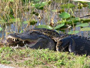 Nur wenige der Jungtiere überleben so lange, dass sie selber Eltern werden können. Denn solange sie klein sind, haben Krokodile viele Feinde. Zu diesen zählen zum Beispiel Schweine, Waschbären, Warane und größere Vögel. Sogar andere Krokodile zählen zu ihren Feinden.