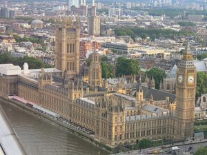 Das britische Parlament hat seinen Sitz im Palace of Westminster, dass auch Houses of Parliament genannt wird.
