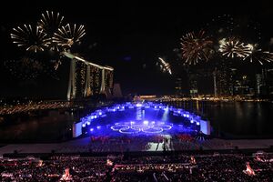 Olympische Ringe mit Feuerwerk (2010) - Singapore 2010 Youth Olympic Games www.flickr.com, CC BY-NC 2.0