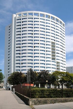 Der Name Klinotel setzt sich zusammen aus Klinik (Spital) und Hotel. Denn das ganze Haus ist ein Wohnheim für das Krankenhauspersonal des AKH.
