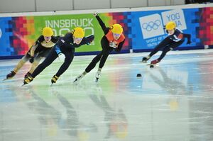 Zieleinlauf bei einem Short Track-Rennen - Dag Oliver (Lillehammer 2016 Youth Olympic Games) www.flickr.com, CC BY-NC 2.0