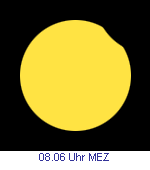 An den Orten, wo der Halbschatten auf die Erde trifft, ist die Verfinsterung der Sonne nur teilweise zu sehen.