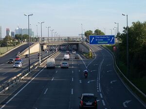 Diese Autobahn (A22) wurde im Jahr 1981 eröffnet. Sie führt am linken Ufer der Neuen Donau entlang und ist eine der wichtigsten Straßen Wiens in den Norden.