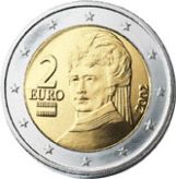 Damit aber trotzdem Symbole der Länder möglich sind hat jedes dieser Länder auf der Rückseite seiner Geldmünzen eine eigene Prägung: auf der Zwei-Euro-Münze befindet sich zB Bertha von Suttner, österreichische Friedensnobelpreisträgerin. Auf der Ein-Euro-Münze ist der Kopf von Wolfgang Amadeus Mozart.