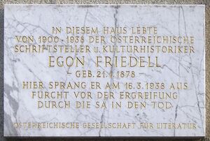 Hier wohnte der Kulturhistoriker und Schauspieler Egon Friedell.