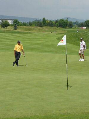 | − | Das Tolle am Golf spielen ist, dass ganz '''schlechte Spieler mit richtig guten Spielern''' zusammen oder auch gegeneinander spielen können. Grund dafür ist das so genannte '''Handicap'''. Ein Anfänger beginnt, sobald er seine erste Prüfung abgelegt hat, mit Handicap 54. Das heißt, er darf auf einem 18-Loch-Golfplatz an jeder Spielbahn um 3 Schläge mehr brauchen, als angegeben ist. Spielt er jetzt mit jemandem, der kein Handicap mehr hat, so hat der Anfänger wirklich gute Chancen, das Spiel zu gewinnen. Denn wenn der gute Spieler beispielsweise an 3 Spielbahnen Pech hat und jeweils ein Bogey spielt, der Anfänger aber mit den 54 zusätzlichen Schlägen auskommt, ist der Anfänger der Sieger. | + | Das Tolle am Golf spielen ist, dass ganz '''schlechte Spieler mit richtig guten Spielern''' zusammen oder auch gegeneinander spielen können. Grund dafür ist das so genannte '''Handicap'''. |