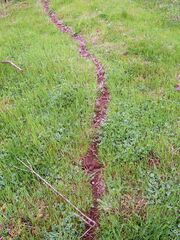 Eine Ameisenstraße führt quer über die Wiese