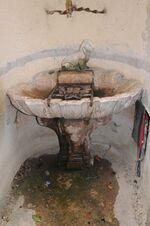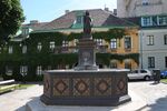Dieser Brunnen, der nur als Zierde aufgestellt ist, war früher ein Auslaufbrunnen einer Wasserleitung.