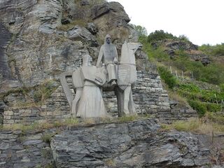 | Beschreibung | Standbild bei Dürnstein: Der Sänger Blondel de Nesle und Richard Löwenherz. Dass sie sich wirklich kannten, ist nicht bewiesen. |