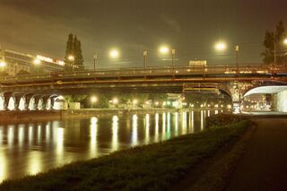 Beschreibung Augartenbrücke bei Nacht - Brücke über den Donaukanal - verbindet den 9. mit dem 2. Bezirk